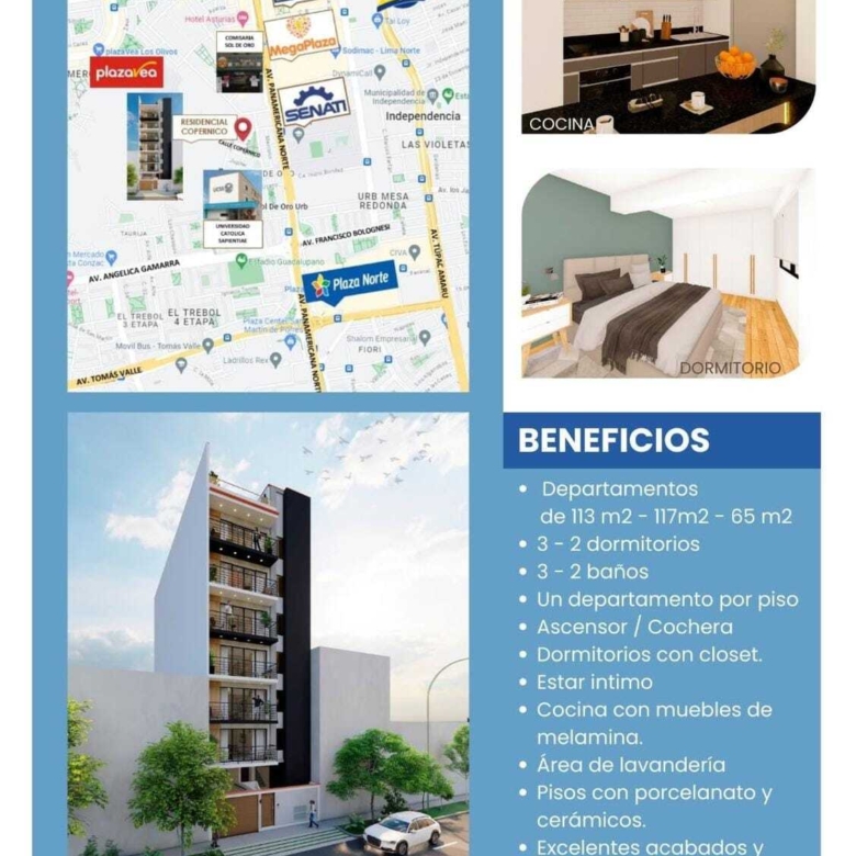 Dptos 101-601 (120 m2), Vista a la Calle – Calle Copernico, Nicolás N°282 Urb. Sol de Oro – Los Olivos, Lima.